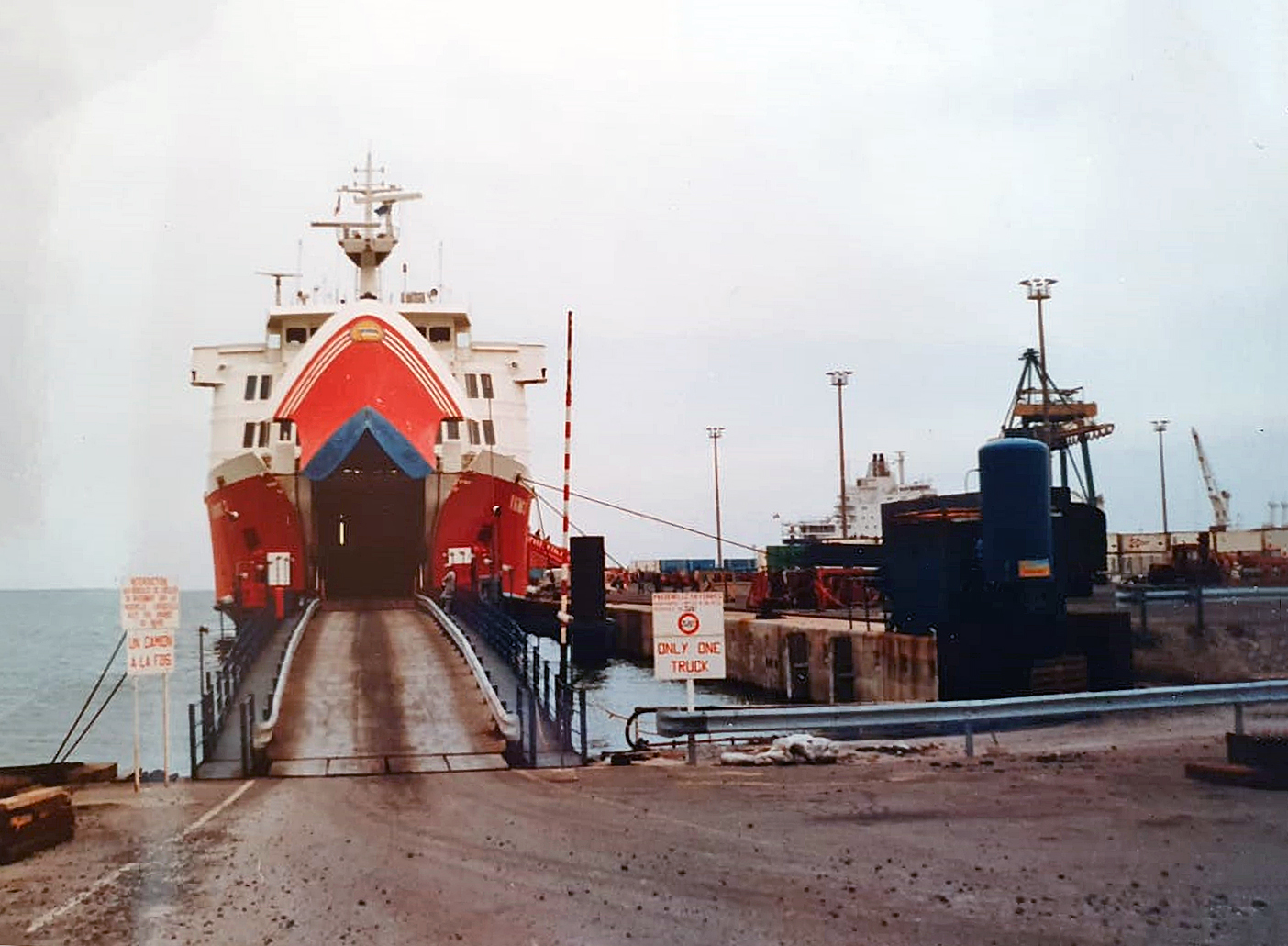 1983, för en resa Vasa - kapellskär, med full last av långtradare,