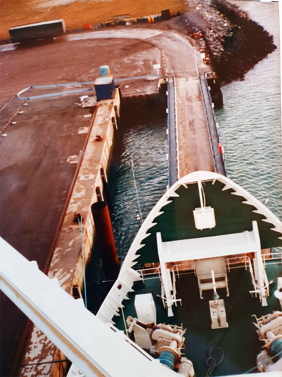 1983, för en resa Vasa - kapellskär, med full last av långtradare,